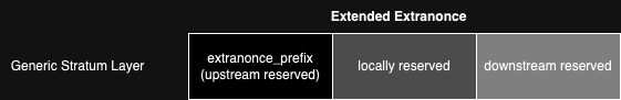 extranonce_prefixbytes are reserved for the upstream layer, where fixed bytes were already established for the Extranonce and are no longer available for rolling or search space splitting. - The locally reserved bytes is where the local layer will assign unique values for its own downstream clients, according to their hashpower.