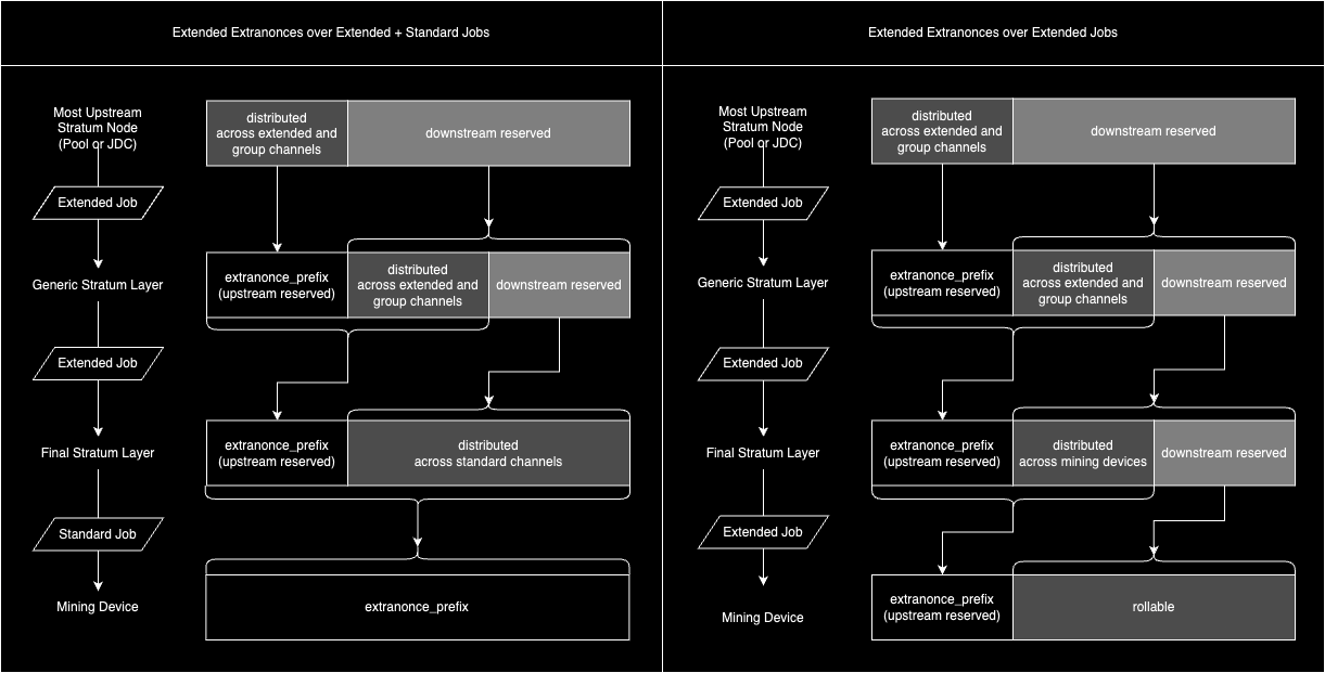 NewExtendedMiningJobnotification), where the Extended Extranonce will be further split. - convert it into multiple Standard Job notifications (